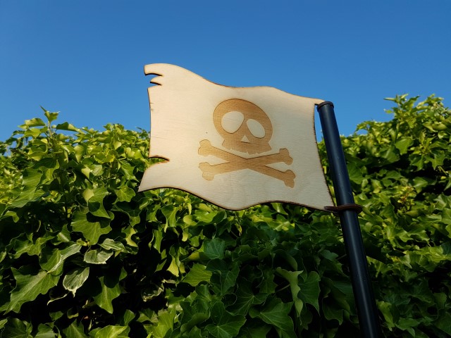 Laser cut & etched pirate flag.