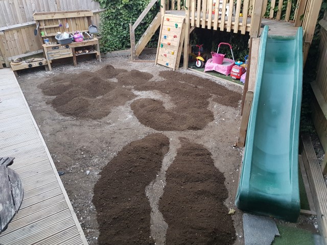 After the main build was completed I moved onto the ground works. Luckily someone locally had a metric tonne of spare top soil from a garden project. Many car trips were used to move it all back to our garden.